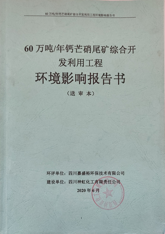 60万吨/年钙芒销尾矿综合开发利用工程环境影响报告书